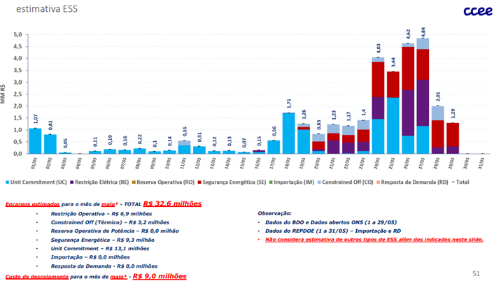No mês de maio/2025, somando os Encargos de Serviço do Sistema, dentre as Restrições Operativas e as de Segurança Energética, obteve-se um total de 9 milhões. Acompanhe como este resultado se solidificou: